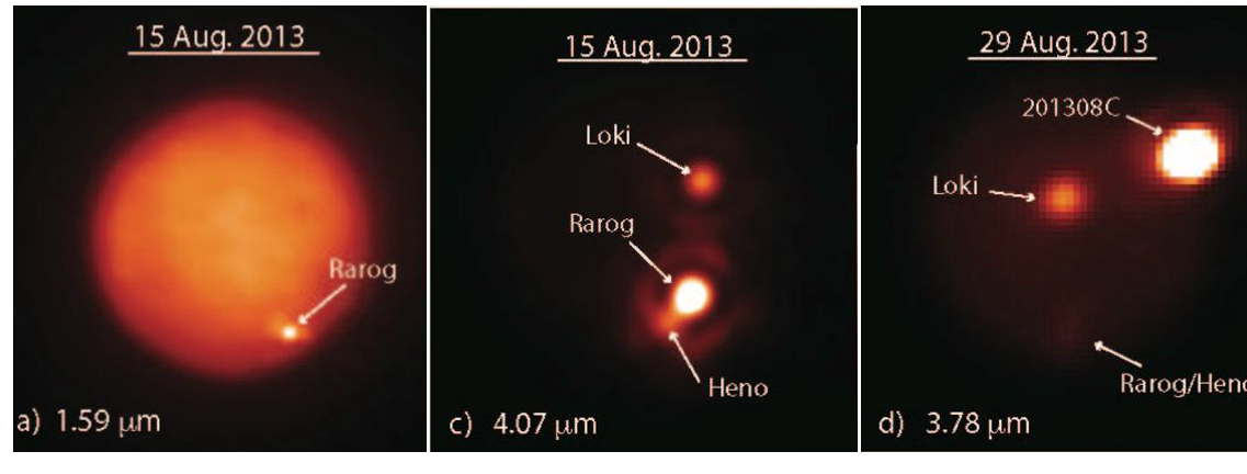 These images show Jupiter's moon Io obtained at different infrared wavelengths with the W. M. Keck Observatory's 10-meter Keck II telescope on Aug. 15, 2013 (a and c), and the Gemini North telescope on Aug. 29, 2013 (d).Image Credit: NSF/NASA/JPL-Caltech//UC Berkeley/Gemini Observatory/W. M. Keck Observatory