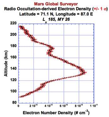 For information about the Mars Global Surveyor Radio Science electron density profile data set, click here
