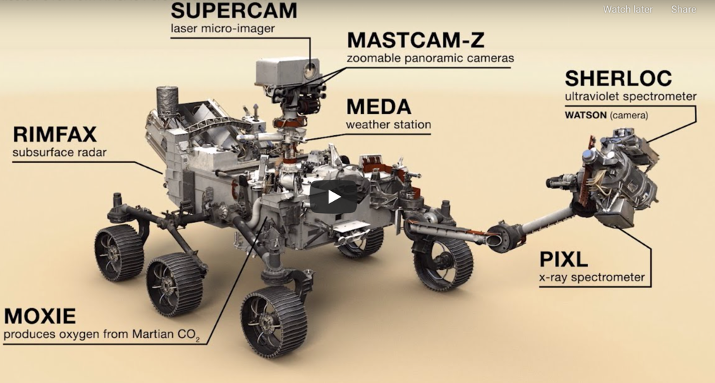 A schematic showing the location of MOXIE and other major instruments. Credit NASA/JPL-Caltec