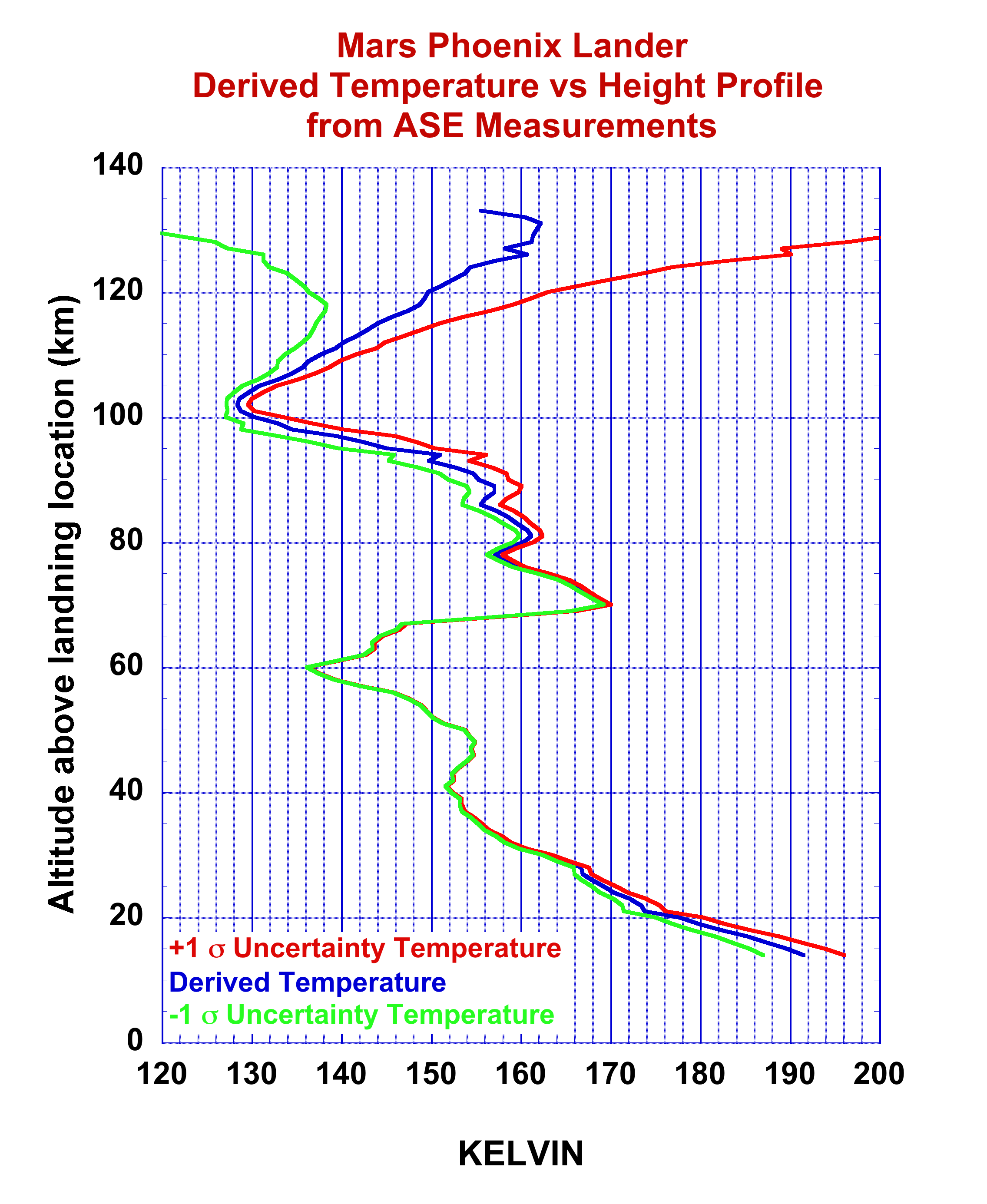 All of these quantities: the derived density, derived pressure, and derived temperature profiles, as well as the 1-σ errors, are provided at 1-kilometer vertical resolution altitude intervals in the PHXCOMPACT.TAB ASCII file in the Raw Data collection.